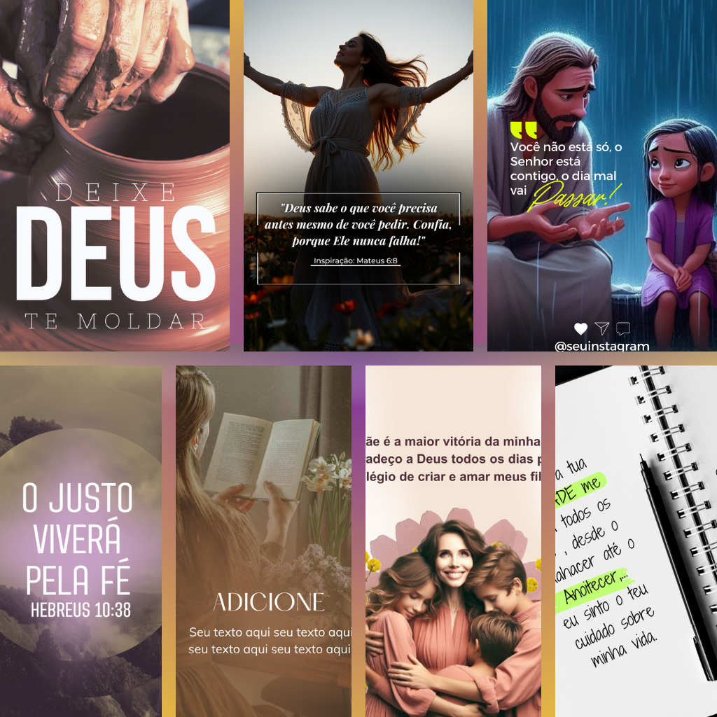 Leve sua mensagem de fé para o mundo com um feed organizado, elegante e profissional — mesmo sem perder horas criando conteúdo do zero
